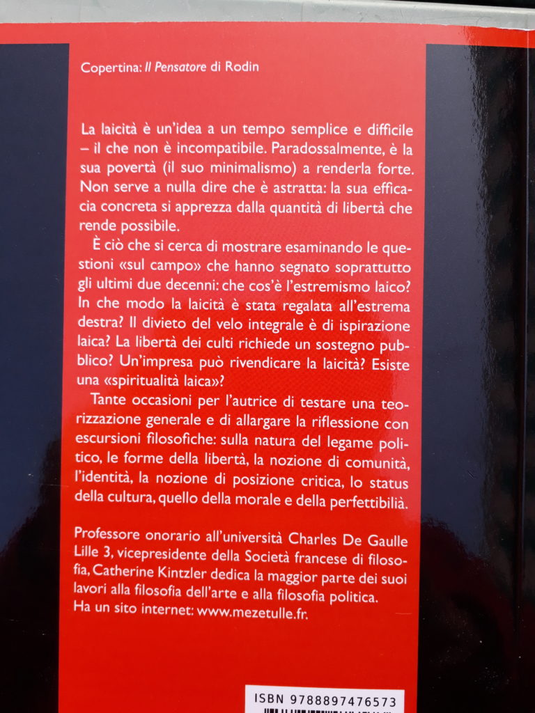 Pensare la laicità, paru en 2022 aux éditions Ariele (Milano) a été traduit par Viviano Cavagnoli, qui est également éditeur. Je le remercie infiniment pour ce travail difficile. Je n’ai que des rudiments d’italien mais suffisants pour juger de la qualité de cette traduction soignée.